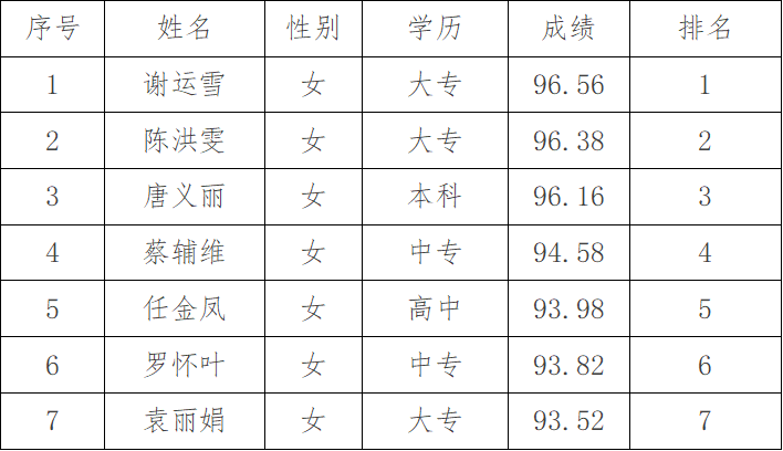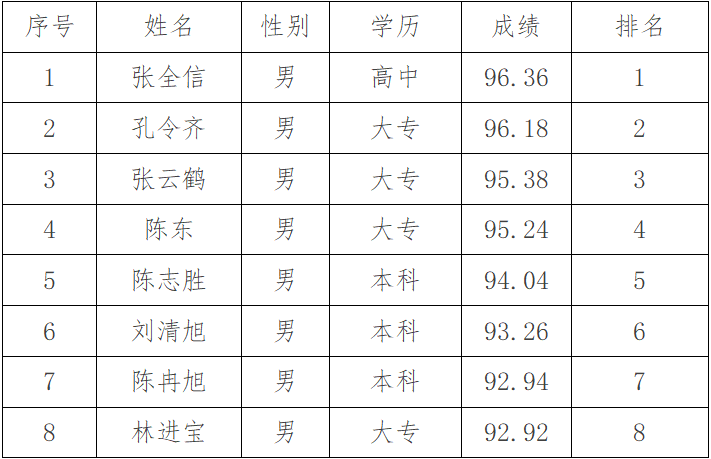 根据2024年1月2日发布的《贵州黔力实业有限公司公开招聘公告》中关于招聘芯绳工的招聘程序及有关要求,公司招聘工作领导小组在2024年1至3月对应聘人员经筛选、资格审核、面试、体检等环节,拟录用谢运雪等7人、张全信等8人共计15人(名单附后)为公司芯绳工操作岗位人员,现予以公示。公示期间,如对人选有异议,请向黔力公司综合管理部反映。